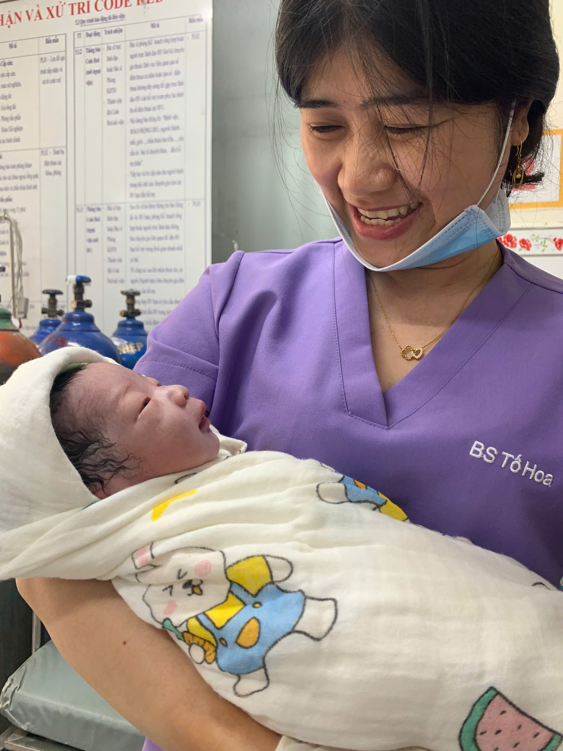 Kết quả, một bé trai kháu khỉnh nặng 3.3kg đã cất tiếng khóc chào đời ngay tại phòng khám.